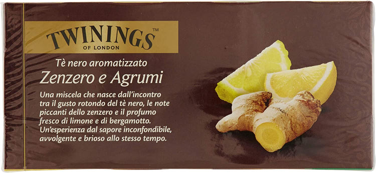 Twinings, Tè Nero Aromatizzato allo Zenzero e Agrumi, Sapore Avvolgente, con Caffeina, Infusi e Tisane, 6 Confezioni da 25 Filtri