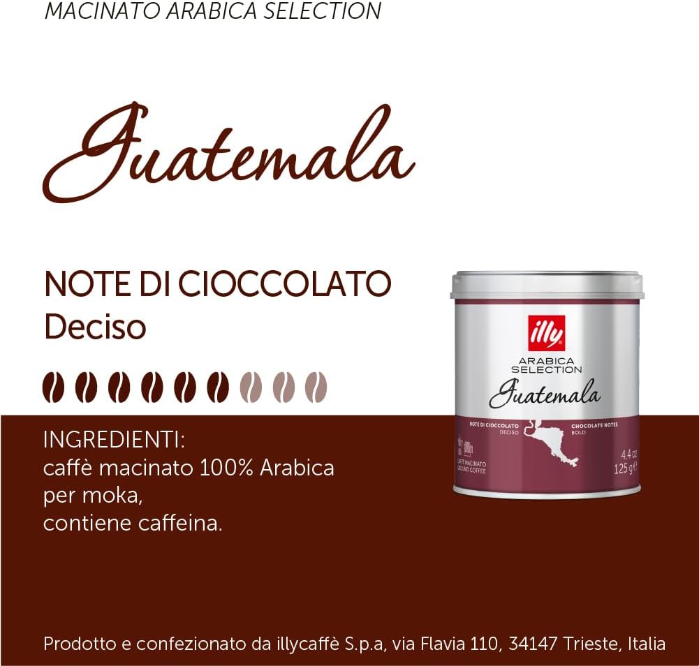 - Caffè macinato per moka Arabica Selection Guatemala; Ogni confezione contiene 6 barattoli da 125gr