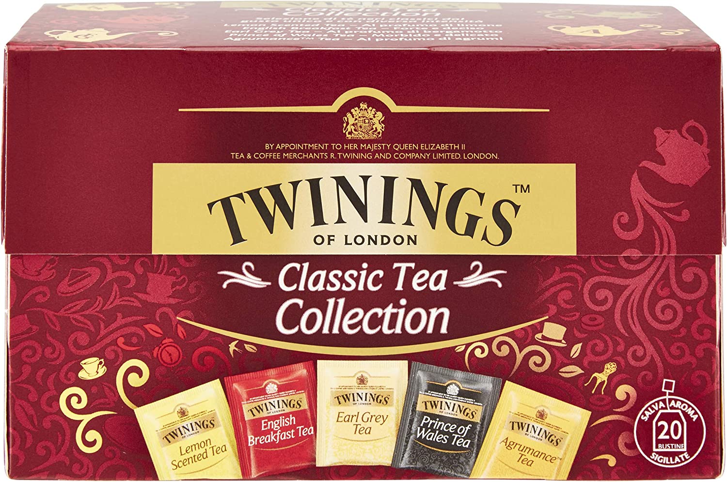 - Confezione spciale da 20 filtri con 5 diversi tè classici: english breakfast, earl grey, agrumance, lemon scented, prince of wales